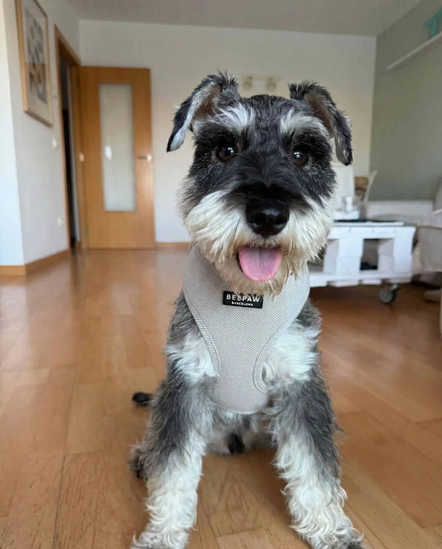 A Tofu le sienta genial el arnés: es cómodo, suave y tiene un toque muy bonito sin ser llamativo. Nos está acompañando en todos los paseos y la verdad es que estamos encantados con cómo se ajusta y lo ligero que es.